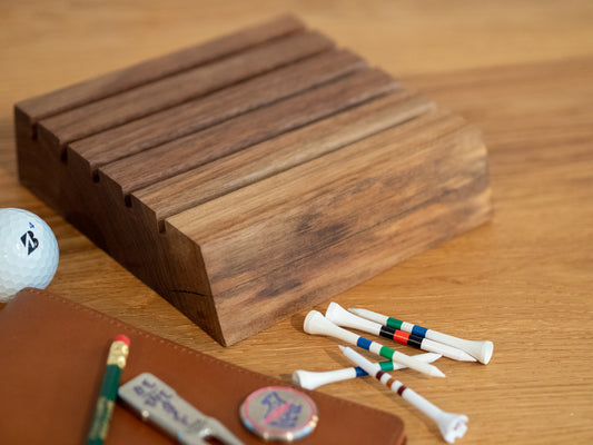 Wide Ball Marker / Divot Tool Display - CUSTOM Layout Live Edge Walnut